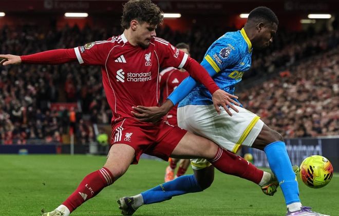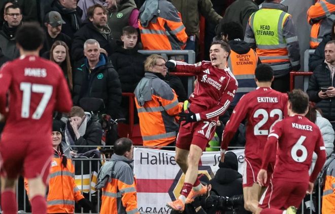 利物浦排出4231陣型。埃基蒂克頂在最前面。基耶薩、麥卡利斯特和維爾茨的進(jìn)攻組合聯(lián)袂出擊。赫拉芬貝赫和瓊斯組成雙后腰。弗林蓬、科納特、范戴克和凱爾凱茲4后衛(wèi)首發(fā)出戰(zhàn)。阿利松擔(dān)任首發(fā)門將。加克波和羅伯遜坐在替補(bǔ)席待命。伊薩克重傷缺陣。薩拉赫去國家隊(duì)踢比賽了。