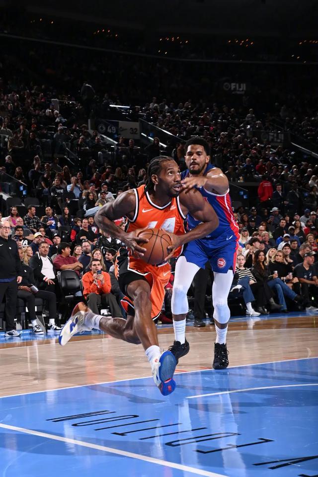 “得益于”活塞努力的追分,比賽的懸念一直都還在。而倫納德用他每一個中遠距離投籃控制著20分左右的分差。活塞追一個,倫納德下個回合就能還一個。甭管是三分還是中投,甭管面前站的是誰,倫納德打爆了所有的活塞對位人,神擋殺神,佛擋殺佛。