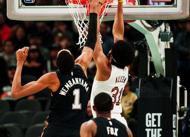 雙方始終沒拉開分差,后半段卡斯?fàn)柡涂苾?nèi)特連續(xù)站上罰球線,馬刺打出12-0打破平衡,莫布里暴扣+梅里爾三分止血,半場(chǎng)馬刺55-49騎士。進(jìn)入下半場(chǎng),莫布里帶隊(duì)繼續(xù)迫近分差,??怂购屯呷麪栠B拿5分止血,阿倫連續(xù)補(bǔ)籃+造犯規(guī),亨特反擊+泰森劈扣,騎士逐漸起勢(shì)。三節(jié)打完,騎士追到76-78,文班亞馬腳部似乎出現(xiàn)一些傷情,走路一瘸一拐。決戰(zhàn)第四節(jié),決戰(zhàn)第四節(jié),文班亞馬繼續(xù)強(qiáng)攻,泰森下三分雨,連中三記三分球,騎士終于反超!中段米切爾也找到手感,造犯規(guī)+三分?jǐn)U大分差。