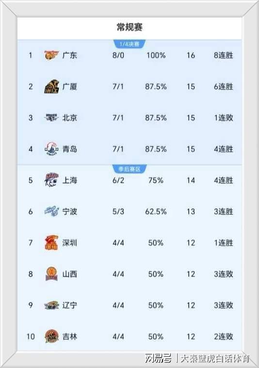 ①、豪取8連勝的廣東男籃一枝獨(dú)秀,反超上海隊登上榜首寶座;