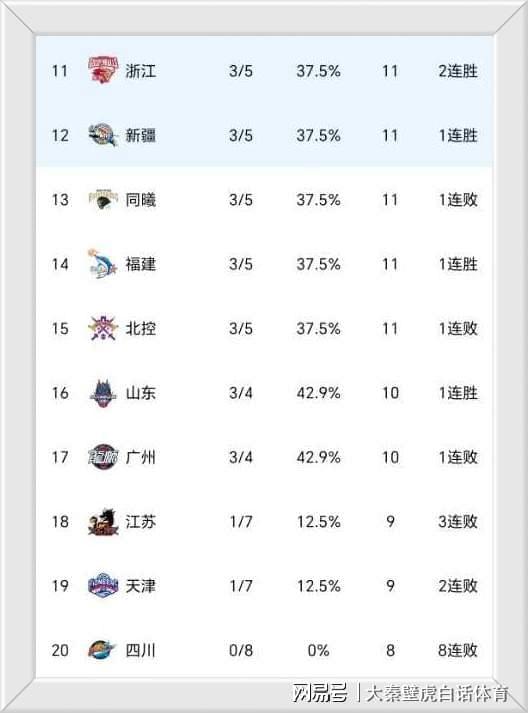 - 8連勝!8連敗!CBA太瘋狂:一夜誕生4場慘案,最新積分榜大變天