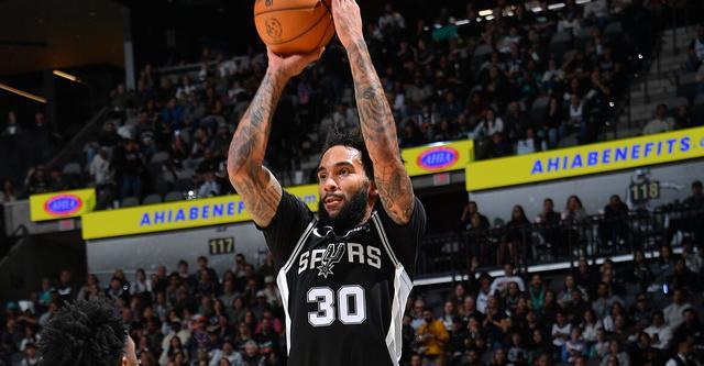 11記三分刷新個人&馬刺隊史單場三分命中數(shù)紀錄,同時追平由弗雷德-范弗里特保持的NBA落選秀單場三分紀錄。(NBA官網(wǎng))