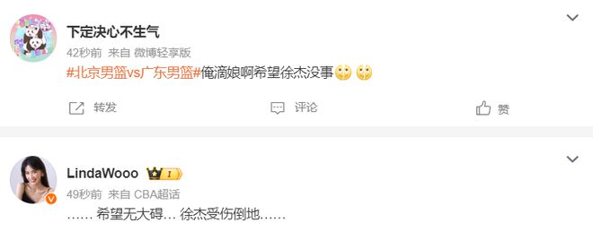 不少球迷紛紛為徐杰祈禱,希望徐杰沒有大礙,傷病滾粗。
