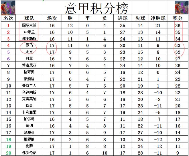 - 意甲最新積分戰(zhàn)報 爭4激烈!羅馬止住頹勢 超尤文1分重回前4