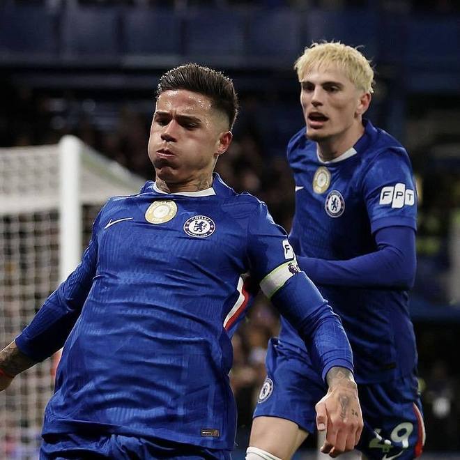 第23分鐘,切爾西終于打出一次流暢的反擊。恩佐在中場(chǎng)完成策動(dòng),隨后前插到禁區(qū),接到隊(duì)友橫傳后冷靜晃開防守,右腳抽射直掛球門死角,切爾西2-1首次反超對(duì)手。