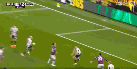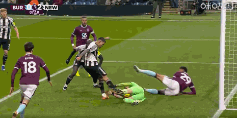 第90+2分鐘,伯恩利后場失誤,吉馬良斯吊射破門,紐卡3-1
