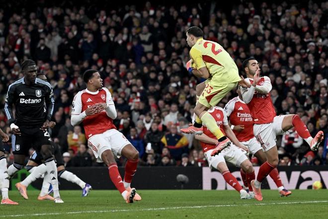 不過,連場惡戰(zhàn)的維拉在力拼完上半場后,體能消耗也到了極致,此時的阿森納只要能打破僵局,就能給維拉摧毀性的打擊。于是到了下半場,壓垮駱駝的最后一根稻草出現(xiàn)了——第47分鐘,阿森納獲得全場第1次角球,薩卡開出的角球直奔球門,馬丁內斯在加布里埃爾的干擾下脫手,皮球砸在加布里埃爾身上后入網。
